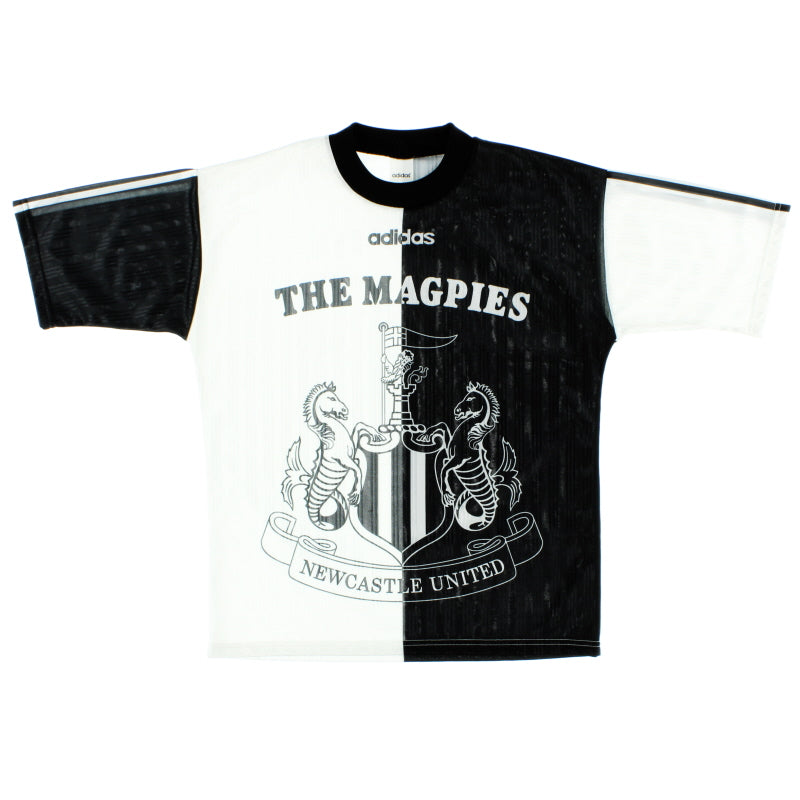 Details - Home shirt as worn when Newcastle United finished 13th in both Premier League seasons and made it to both the 1998 and 1999 FA Cup Finals losing 2-0 against Arsenal and Manchester United respectively. Also worn during Newcastle's 1997-98 Champions League campaign when they were knocked out at the Group Stage after finishing 3rd in their group behind Dynamo Kyiv and PSV Eindhoven.