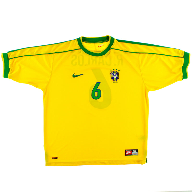 1998-00 Brazil Home Shirt R.Carlos #6 XL
