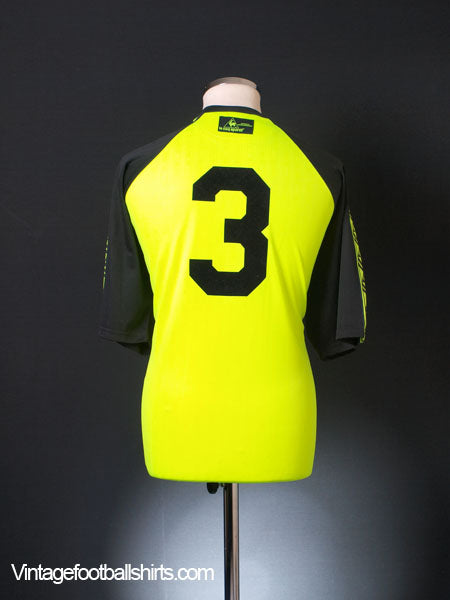 Details - This Shirt is famous for the 1998-99 FA Cup match versus Arsenal, Sheffield United complained about an Arsenal goal (boss Steve Bruc even threatened to take his team off the pitch) and in a remarkable display of generosity Arsenal offered to play the game again... with the same outcome. It was all about an incident where the Blades (wrongly) felt Arsenal should have given them the ball back from a throw-in. Very Collectable shirt with No3 Stiched onto the rear.
