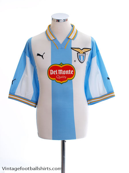 Details - European shirt as worn when Lazio were knocked out in the quarter finals of the Champions League, losing 5-3 on aggregate against Valencia, and won the UEFA Super Cup, beating Manchester United 1-0.