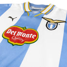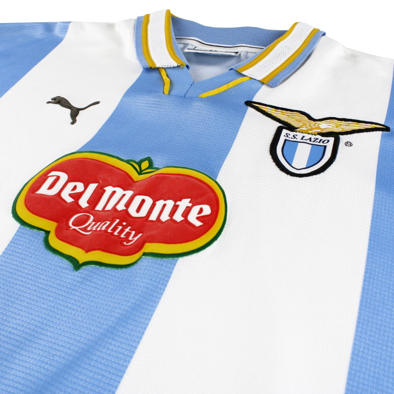 Details - Very rare classic European home shirt as worn when Lazio were knocked out in the quarter finals of the Champions League, losing 5-3 on aggregate against Valencia, and won the UEFA Super Cup, beating Manchester United 1-0.
