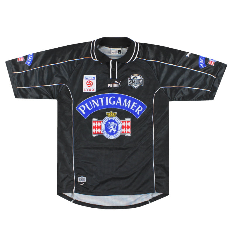 Away shirt as worn when Sturm Graz finished as runners up in the Austrian Bundesliga, finishing 3 points behind champions Tirol Innsbruck, and were knocked out in the third round of the Austrian Cup, losing 5-4 on penalties against ASKO Pasching after the tie finished 1-1 after extra time.