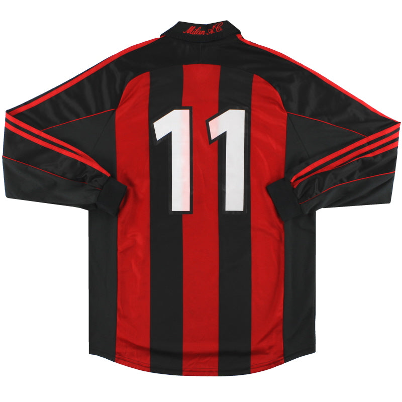 2000-02 AC Milan adidas Player Issue Home Shirt #11 L/S M