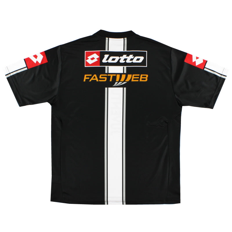Details - Training shirt as worn when Juventus finished as champions of Serie A, finishing 1 point ahead of second placed Roma, and made it to the final of the Coppa Italia, losing on away goals against Parma after the tie finished 2-2 on aggregate. Also worn when Juventus were knocked out in the second group stage of the Champions League, finishing bottom of their group behind Bayer Leverkusen, Deportivo La Coruna and Arsenal.