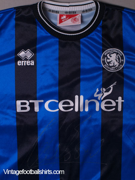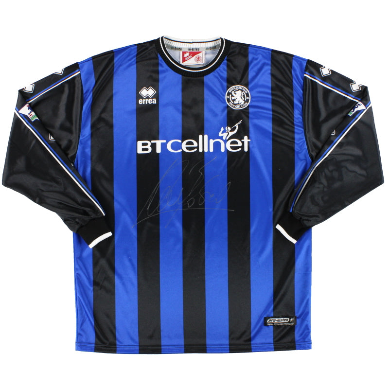 Details - Away shirt believed to be worn or issued to Croatian forward Alen Boksic in the 2001-02 campaign,during this season he made 23 appearances scoring 8 goals, making him Middlesbrough's top scorer in the league, helping Middlesbrough to a 12th place finish in the Premier League and a FA Cup semi final
