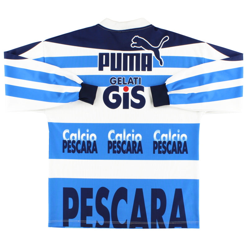 Details - Home shirt as worn when Pescara finished 4th in Serie C1 Group B, failing to gain promotion to Serie B after being knocked out in the semi finals of the play offs due to Catania being the higher ranked team after the tie finished 1-1 on aggregate.