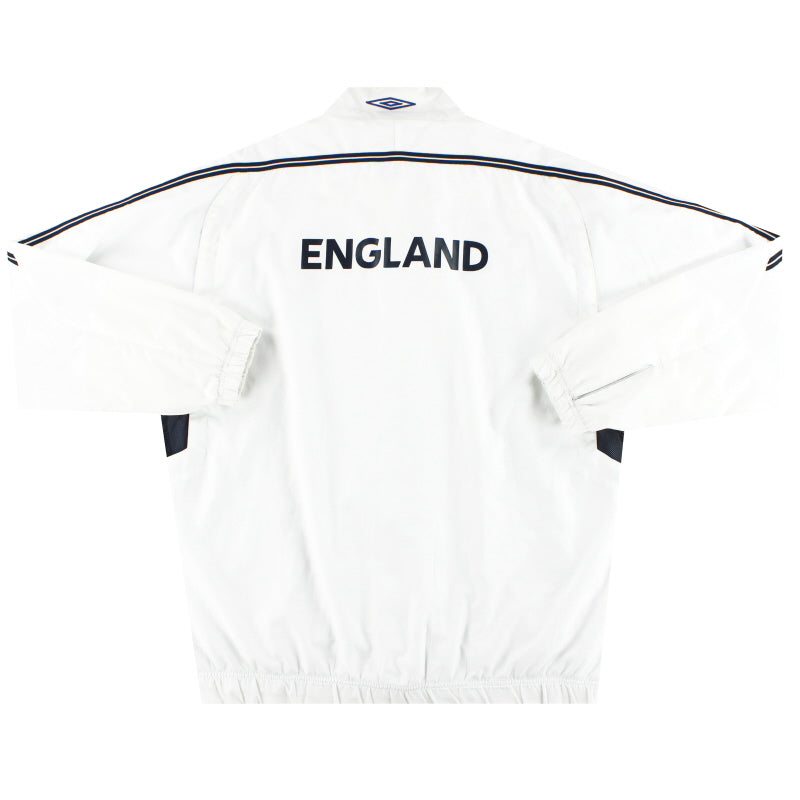 Details - Track jacket as worn when Beckham sent England into the 2002 World Cup Finals with a awesome free kick in the 93rd minute against Greece in the final qualifying game. During the competition they made it to the quarter finals, losing 2-1 against the eventual winners Brazil.