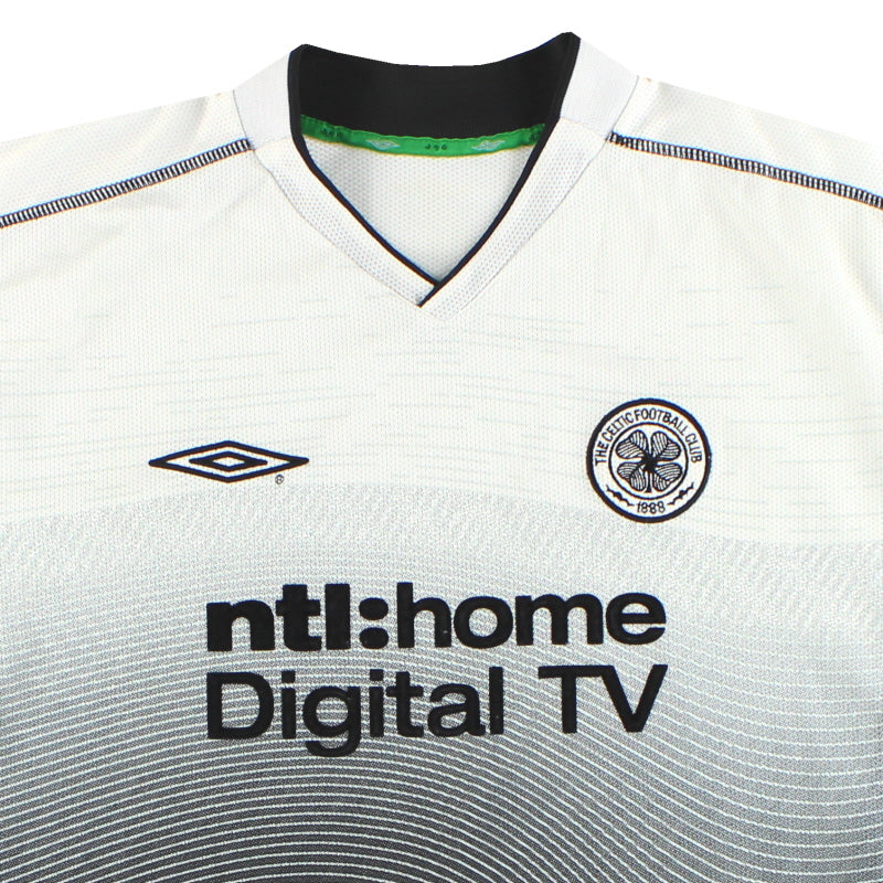 Training shirt as worn when Celtic finished as runners up in the Scottish Premier League, finishing behind champions Rangers on goal difference by 1 goal, and made it to the final of the Scottish League Cup, losing 2-1 against Rangers. Also worn when Celtic made it to the UEFA Cup final, losing 3-2 after extra time against Porto with Derlei scoring the winning goal for Porto in the 115th minute.