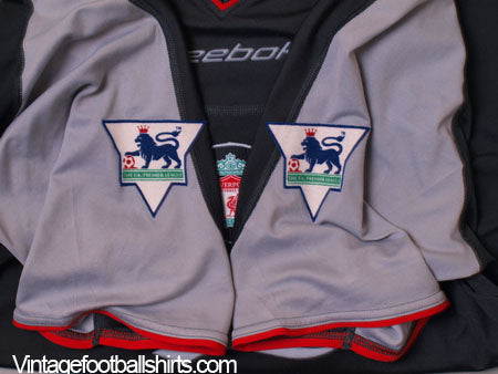 Details - Black away shirt as worn when Liverpool finished 5th and 4th in the Premier League respectively and won the 2003 League Cup final, beating Manchester United 2-0 with goals from Steven Gerrard and Michael Owen