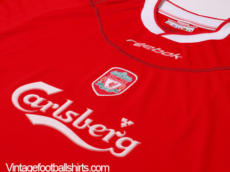 Details - Home shirt as worn when Liverpool finished 5th and 4th in the Premier League respectively and won the 2003 League Cup final, beating Manchester United 2-0 with goals from Steven Gerrard and Michael Owen