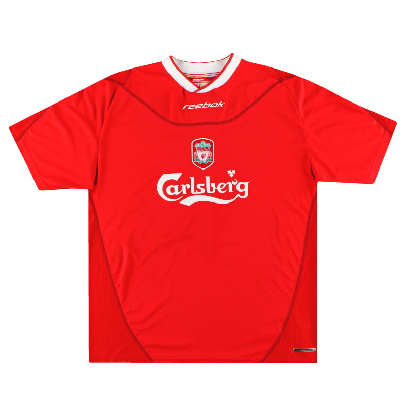 Home shirt as worn when Liverpool finished 5th and 4th in the Premier League respectively and won the 2003 League Cup final, winning 2-0 with goals from Steven Gerrard and Michael Owen.