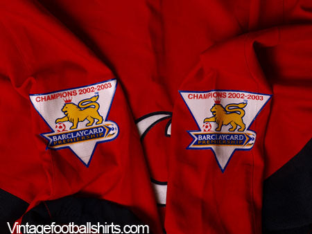 Features - Ferdinand #6 to reverse in official Lextra felt print, Premiership champions 2002-03 patches to sleeves