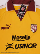 Details - Away shirt as worn when FC Metz finished 14th in Ligue 1 and were knocked out in the last 64 of the Coupe de France, losing 1-0 against AS Monaco. Also worn when Metz were knocked out in the last 16 of the Coupe de la Ligue, losing 1-0 against Nice.