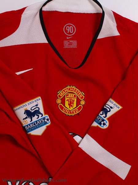 Features - Keane #16 to reverse in official PU plastic print, Premier League champions 2003-2004 patches to both sleeves