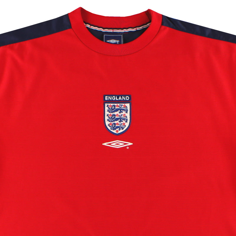 Training shirt as worn when Beckham sent England into the 2002 World Cup Finals with a awesome free kick in the 93rd minute against Greece in the final qualifying game. During the competition they made it to the quarter finals, losing 2-1 against the eventual winners Brazil.