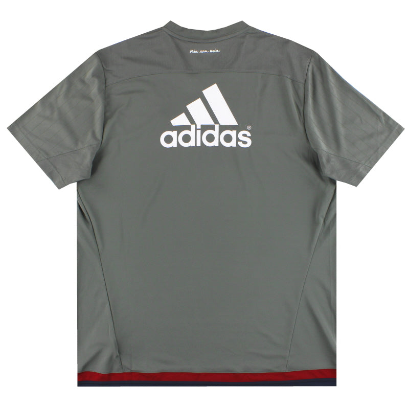 Details - Training shirt as worn when Bayern Munich won a domestic double, finishing top of the Bundesliga, 10 points ahead of second placed Borussia Dortmund, and beat Dortmund 4-3 on penalties in the DFB-Pokal final after the game finished 0-0 after extra time. Also worn when Bayern Munich were knocked out in the semi finals of the Champions League, losing on away goals against Atletico Madrid after the tie finished 2-2 on aggregate.