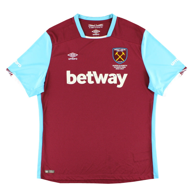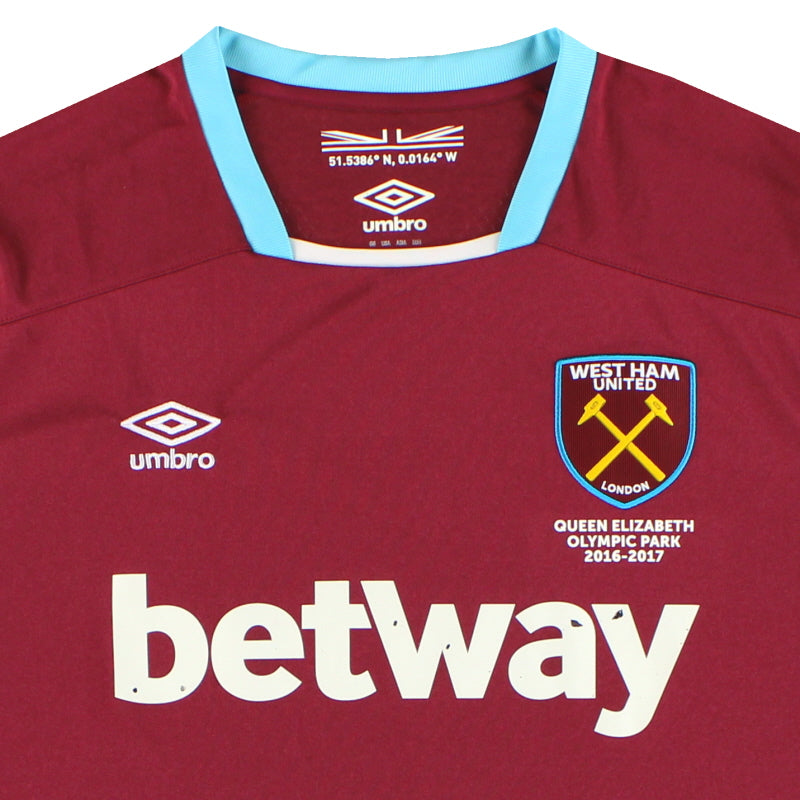 Home shirt as worn in West Han United's first season in the Olympic Stadium when the team finished 11th in the Premier League and made it to the play off round of the Europa League.