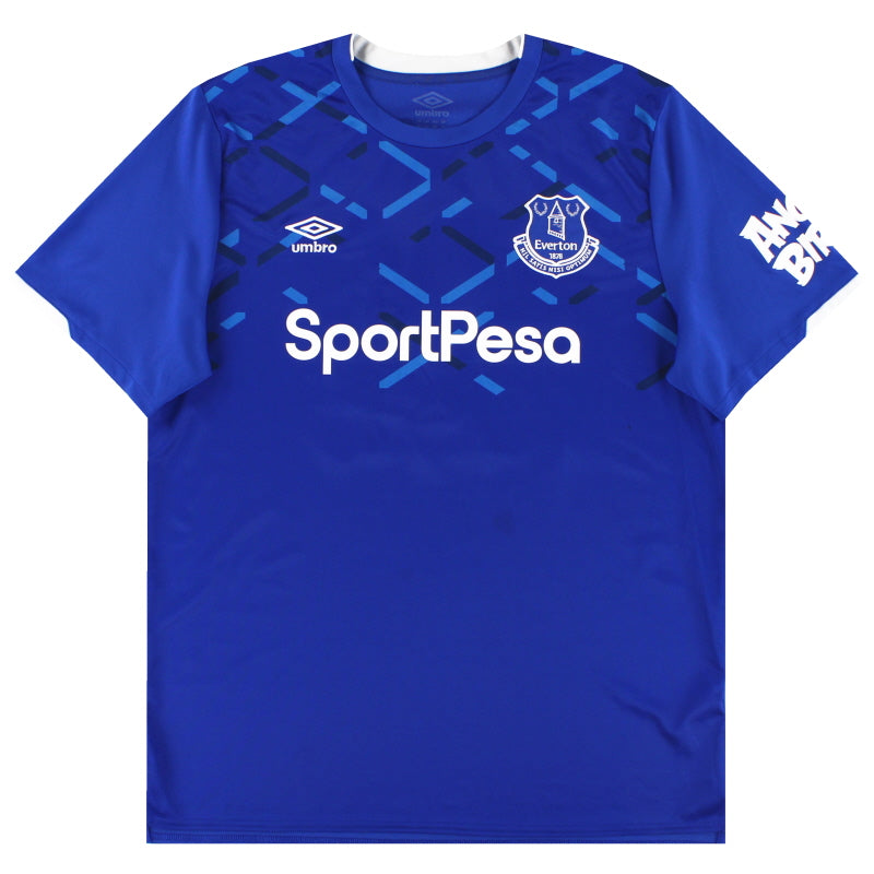 Details - Home shirt as worn by Everton when a poor start in the first 15 games of the Premier League season saw Everton fall into the Premier League relegation places as Marco Silva was sacked as manager, being replaced by Carlo Ancelotti. The appointment of Ancelotti led to an improvement in form and saw them finish in 12th position with the team also reaching the quarter finals of the EFL Cup, losing 4-2 on penalties against Leicester City.