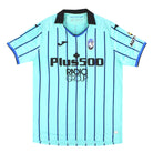 Third shirt featured an aquamarine blue base with thin black and blue pinstripes running across the front, back, and sleeves a distinctive departure from the traditional black and blue home look.