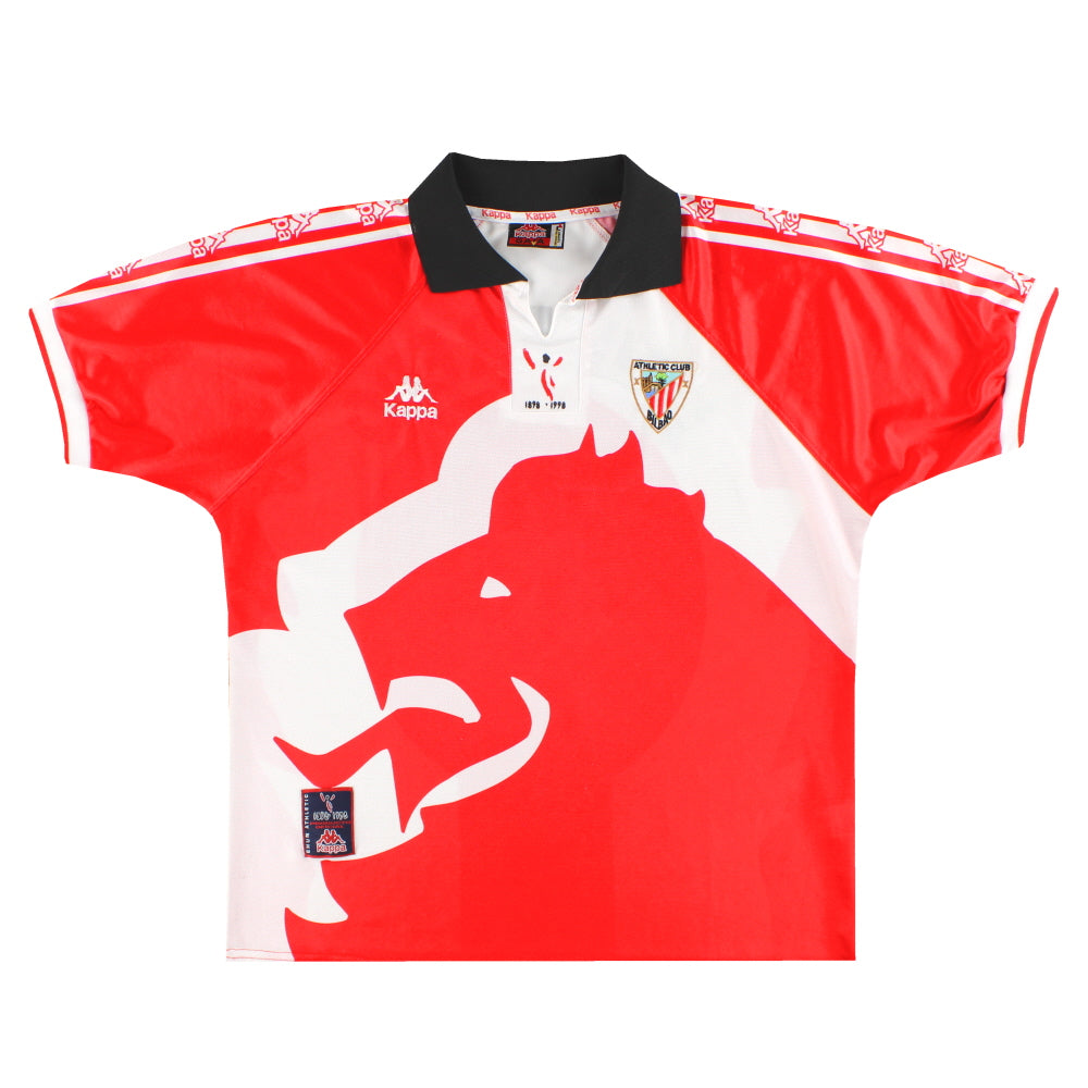 Centenary home shirt as worn in Athletic Bilbao's centenary season when they finished 2nd in La Liga, finishing 9 points behind champions Barcelona, and were knocked out in the quarter finals of the Copa del Rey, being knocked out on away goals against Mallorca after the tie finished . Also worn when Bilbao were knocked out in the second round of the UEFA Cup, losing 2-1 on aggregate against Aston Villa.