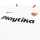Details - Home shirt as worn when Sevilla finished 6th in La Liga and were knocked out in the quarter finals of the Copa del Rey, losing 6-3 on aggregate against Barcelona. Also worn when Sevilla were knocked out in the last 16 of the Europa League, losing 6-5 on aggregate against Slavia Prague.