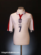 Details - Home shirt as worn in the quarter-final of the 2004 European Championships against Portugal, the game against the hosts finished 2-2 after extra time, with England once again, losing the penalty shoot-out, 6-5 with David Beckham and Darius Vassell failing to convert from the spot.
