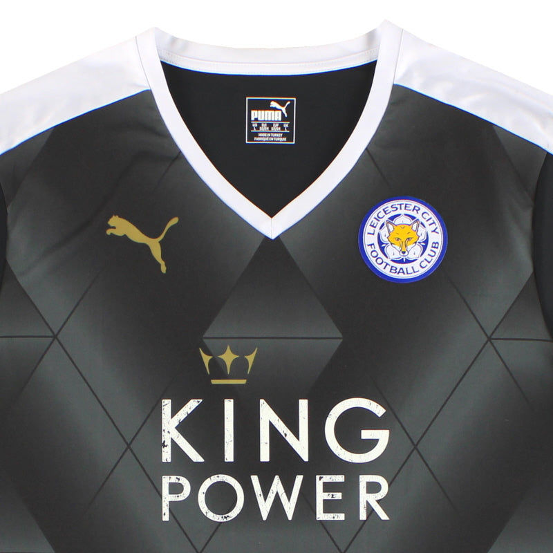 Away shirt as worn in a magical season for Leicester City when the team overcame the 5000-1 odds to become champions of England for the first time in the clubs history. Following the appointment of Claudio Ranieri as manager in the summer, Leicester City were thought to be relegation candiates again after they narrowly avoided relegation in the previous season thanks to a run of 7 wins in their final 9 games. However, Leicester City took their form from the final part of the previous season into the 2015-16 season. Leicester ended the season 10 points clear of their closest rivals as Riyadh Mahrez won the PFA Player of the Year award after ending the season with 17 goals and 11 assists.