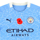Home shirt as worn when Manchester City won their third Premier League title in four seasons under Pep Guardiola as the team finished 12 points clear of second placed Manchester United at the top of the table. The season also saw Manchester City win their fourth straight EFL Cup after beating Tottenham 1-0 in the final. A first Champions League title for the club proved elusive however, making it to the final of the competition for the first time in the clubs history but eventually losing out to Chelsea after the tie finished 1-0 with Kai Havertz scoring the only goal of the game.