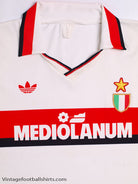 Details - Away shirt as worn when AC Milan finished as runners up in the Serie A in the 1990-91 season before going one better in the next season, finishing as Serie A champions, finishing 8 points clear of second placed Juventus. Also worn when AC Milan won the 2000 Intercontinental Cup, beating Club Olimpia 3-0 with goals from Frank Rijkaard and Giovanni Stroppa.