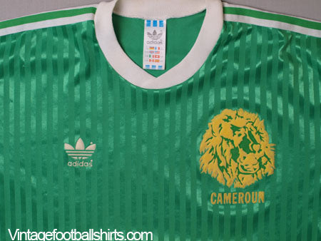 Details - Home shirt as worn when Cameroon competed in the 1990 World Cup getting knocked out at the quarter final stage losing 3-2 against England after extra time