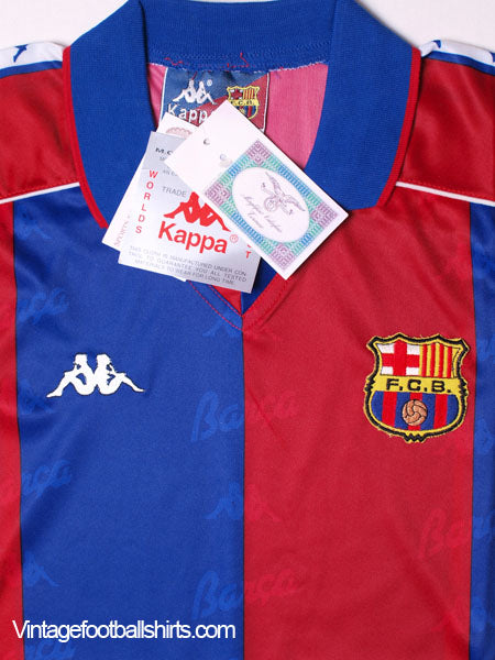 Details - Classic home shirt worn when Barcelona won back to back La Liga titles in the 1992-93 and 1993-94 seasons, and were knocked out in the semi finals of the 1992-93 Copa del Rey, losing 3-2 on aggregate against Real Madrid. Also worn when Barcelona made it to the final of the 1993-94 Champions League, losing 4-0 against AC Milan.