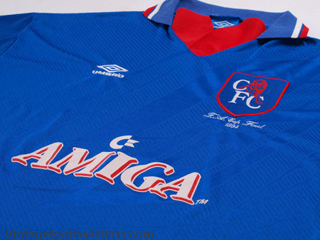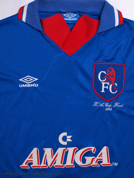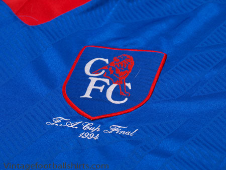 Details - Home shirt as worn when Chelsea made it to the 1994 FA Cup final, losing 4-0 against Manchester United with goals from Eric Cantona, Mark Hughes and Brian McClair