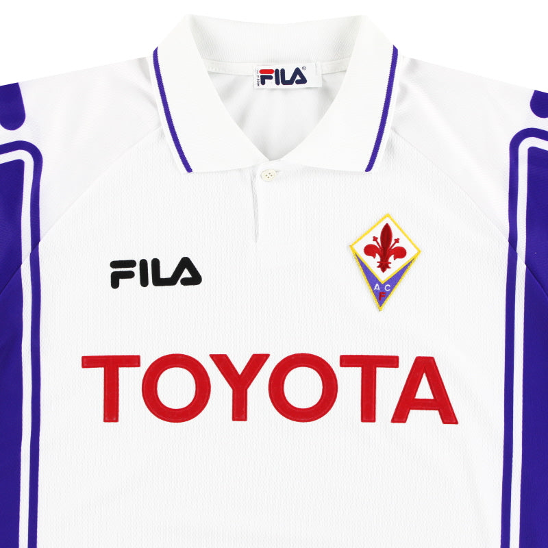 Details - Away shirt as worn when Fiorentina finished 7th in Serie A and were knocked out in the quarter finals of the Coppa Italia, losing on away goals against Venezia after the tie finished 1-1 on aggregate. Also worn when Fiorentina were knocked out in the second group stage of the Champions League after finishing 3rd in their group behind Manchester United and Valencia.