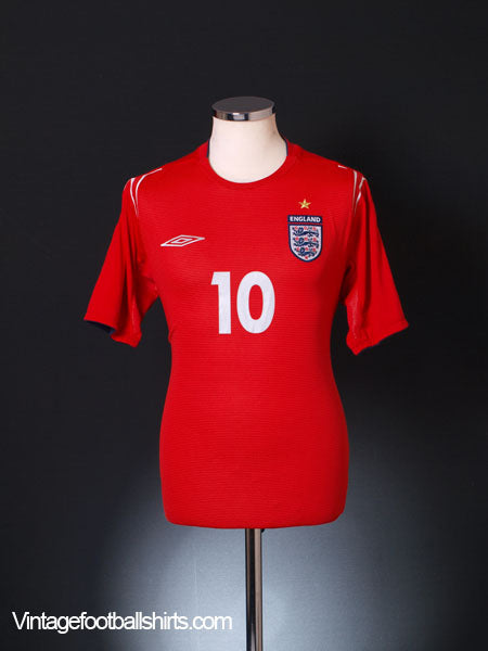 Details - Away shirt as worn when England made it to the quarter finals of the 2004 European Championships against Portugal, the game against the hosts finished 2-2 after extra time, with England once again, losing the penalty shoot-out, 6-5 with David Beckham and Darius Vassell failing to convert from the spot.
