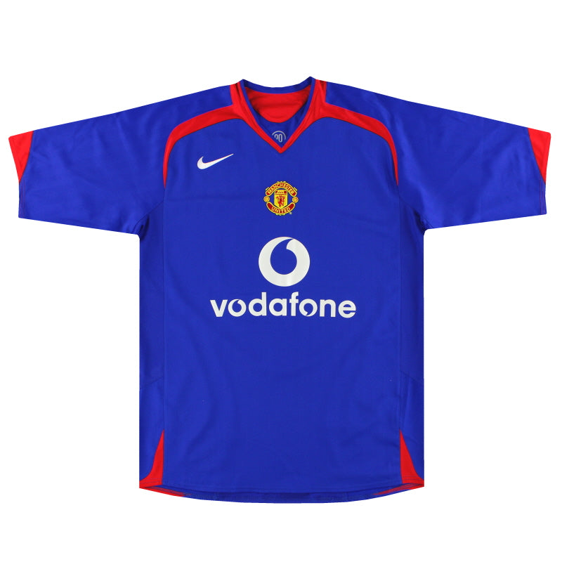 Away shirt as worn when Manchester United finished as runners up in the Premier League, 8 points behind champions Chelsea, and also won the League Cup, beating Wigan Athletic 4-0 in the final thanks to goals from Wayne Rooney, Louis Saha and Cristiano Ronaldo.