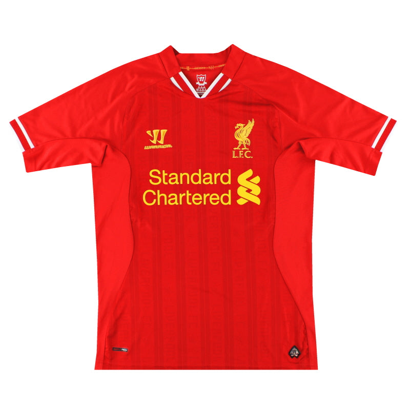 Home shirt as worn when Liverpool came within 2 points of winning their first Premier League title, but their chances of winning the title were all but ended after conceding 3 goals in the final 11 minutes against Crystal Palace, after taking a 3-0 lead, to finish the game 3-3.
