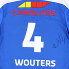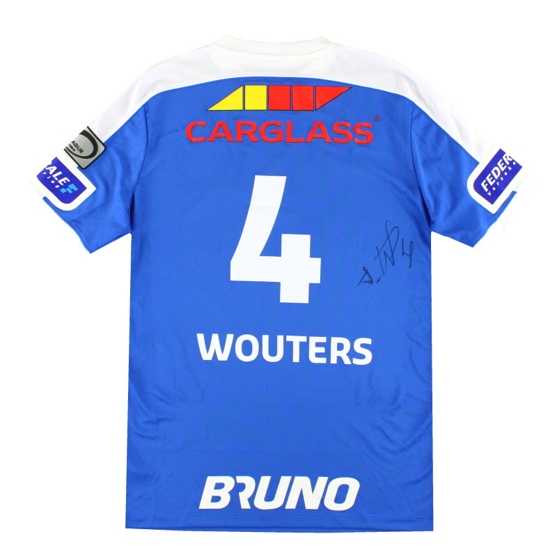 Player Features - Wouters #4 to reverse in official plastic print, unknown signature to reverse, Belgian Pro League patches to both sleeves, Belgian Homeless Cup patch to front