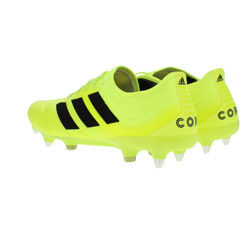 Details - These adidas premium Copa 19.1 Mens SG Football Boots in solar yellow and core black colourway featured heavily during the early stages of the 2019/20 season have been crafted with a a mono-tongue construction which allows for an adaptive fit and sock-like experience, whilst the internal elastic strap works with the lacing for an enhanced lockdown. The Fusionskin technology utilises a revolution in the process of leather treatment, making it seamless and less permeable, whilst the internal foam pads and ortholite insole delivers exceptional cushioning and the X Ray K leather vamp allows you to control the ball with ease