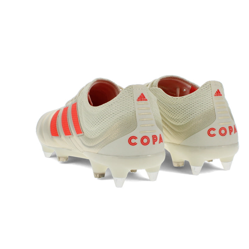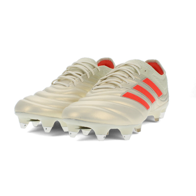 Details - These adidas premium Copa 19.1 Mens SG Football Boots in and beige and solar red colourway featured heavily during the early stages of the 2019/20 season have been crafted with a a mono-tongue construction which allows for an adaptive fit and sock-like experience, whilst the internal elastic strap works with the lacing for an enhanced lockdown. The Fusionskin technology utilises a revolution in the process of leather treatment, making it seamless and less permeable, whilst the internal foam pads and ortholite insole delivers exceptional cushioning and the X Ray K leather vamp allows you to control the ball with ease