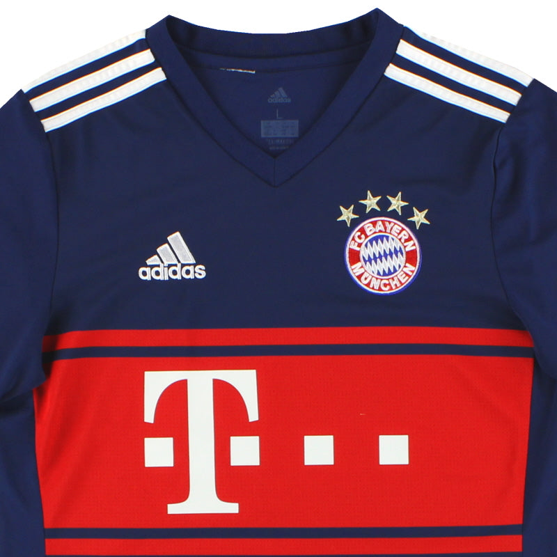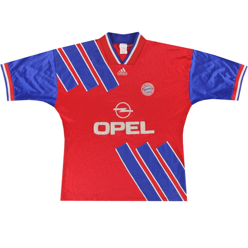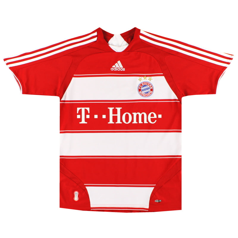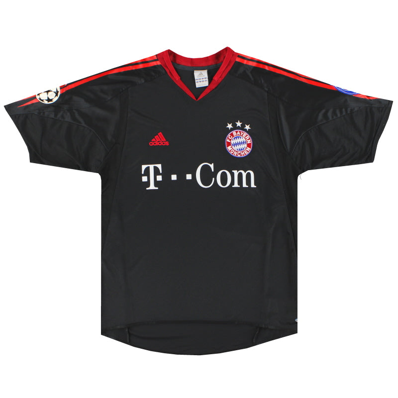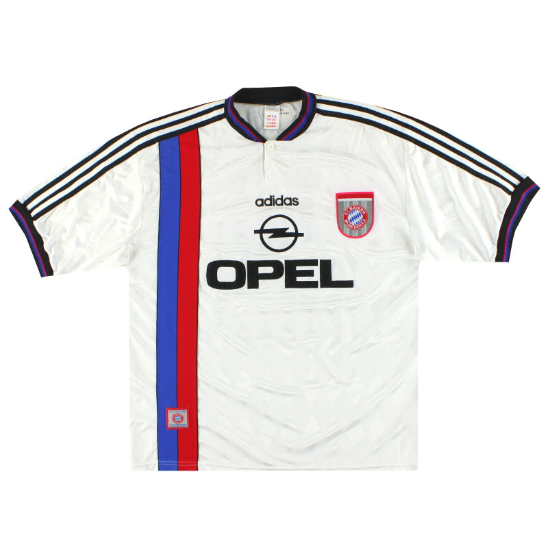 Being a Bayern Munich shirt collector must require a lot of storage space as the German giants have worn an incredible number of kits in the past 30 or so years. Red of course is the favoured home colour (although originally white shirts were worn with red only arriving in 1905 when the side joined forces with Munchner Sport-Club who insisted on changing the jersey colour) and on more than one occasion the side have worn several different designs of home kit in the same season. Bayern are also one of the leading pioneers of adopting a completely different kit for Champions League and Cup games - often in a totally different colour. Although white has always been used to trim the Bayern shirt in the early 90s blue also began to creep in as an additional trim colour culminating in the Barcelona-like 1995 striped jersey. More recently red and white hoops or stripes have also been sported. The Bayern shirt is also renowned amongst football kit afficiandos for having the club name printed on the back of the shirt - probably something to do with the fact that in recent years a badge didn't appear regularly on the front of the jersey until 1989! White shirts are the most traditional Bayern change outfits although in the 80s and 90s the club had an unusual tradition of wearing yellow and green for luck when playing their rivals FC Kaiserslautern. The club have stayed loyal to local suppliers when it comes to kit and have been with adidas since the early 1970s. In fact for several years adidas also acted as shirt sponsor for the side before being replaced by Magirus Deutz in 1979. Iveco, Commodore and Opel have subsequently sponsored the team with mobile phone company T-Mobile arriving in 2002.