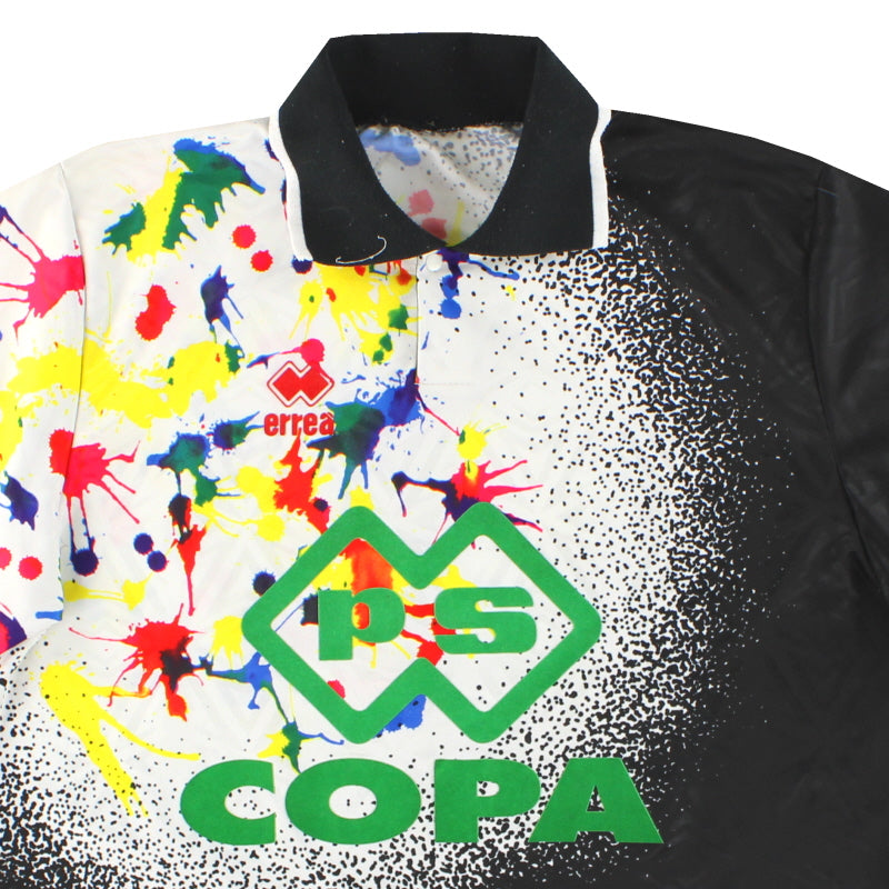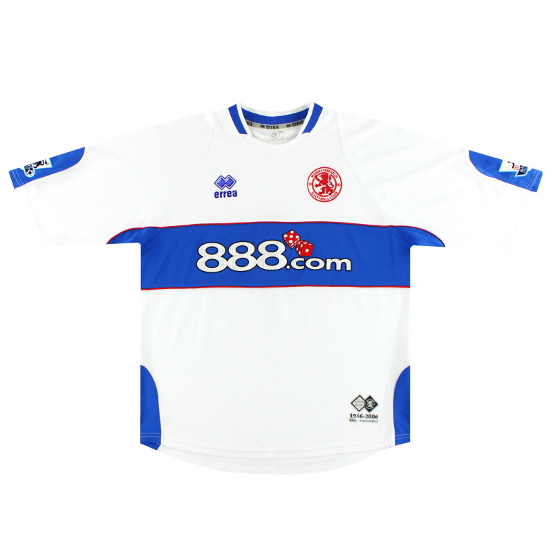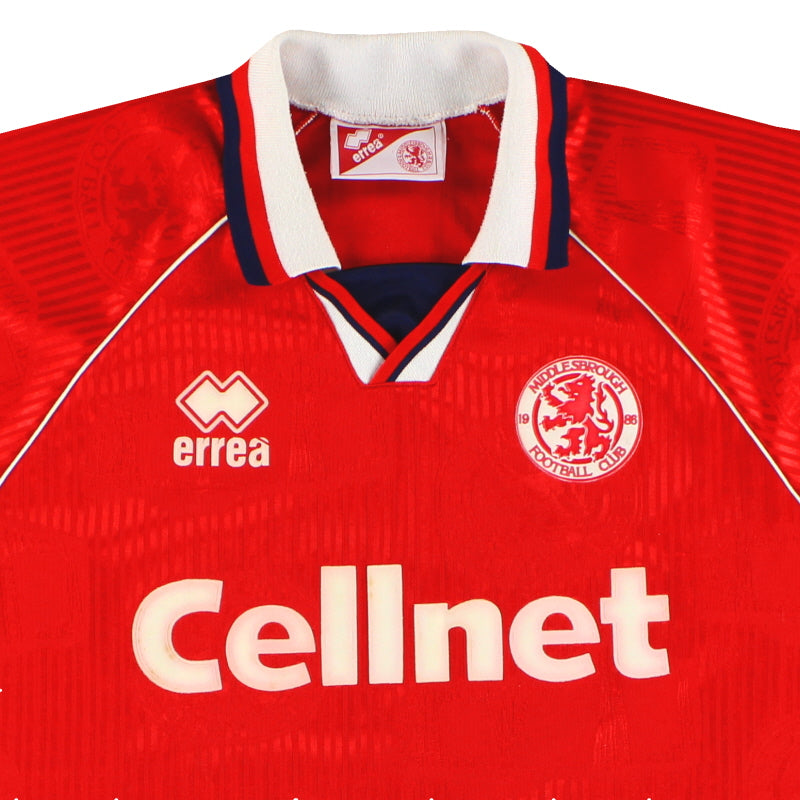 Italian sportswear company Errea were founded in San Polo di Torrile in 1988 by Angelo Gandolfi and are known in England primarily for their long association with Middlesbrough for whom they supplied playing kit from 1994 to 2009. During this time they produced a rich variety of home and away strips for the side although their 15 years with the club was also notable due to the inclusion of a new set of kits every season at a time when two-year kit cycles were the norm.