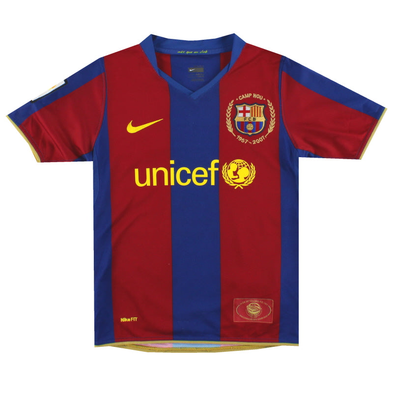 Details - Home shirt released to celebrate 50 years of the Nou Camp, with the embroidery around the club badge '1957-2007', as worn when Barcelona finished 3rd in La Liga and made it to the semi finals of the Champions League, losing 1-0 on aggregate against Manchester United