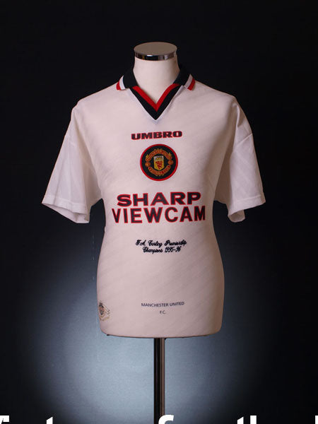 Features - Beckham #10 to reverse in original felt print, Premier League patches to sleeves and 'FA Carling Premiership Champions 1995-96' stitched to front