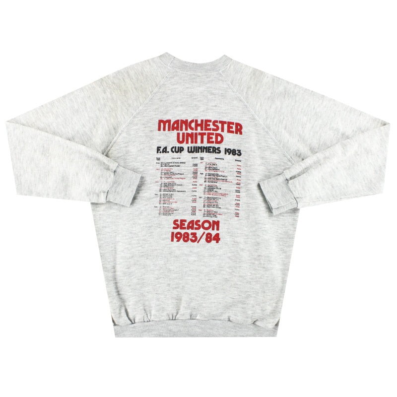 Details - Sweatshirt released to remember the 1983-84 season for Manchester United when they won the 1983 F.A Cup against Brighton and Hove Albion, where they drew the first leg 2-2 but in the replay they managed a 4-0 win to gain the trophy.