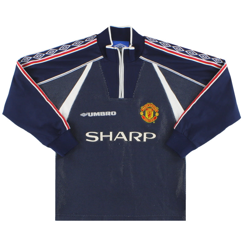 Details - Goalkeeper shirt as worn when United made history by becoming the first English team to complete the treble. The league title was contested all the way until the final game of the season where only a win would be enough with only a point separating United and Arsenal. A 2-1 win over Spurs saw United crowned Champions of England. The FA Cup saw United face Newcastle at Wembley where The Red Devils showed exactly why they were League Champions with a 2-0 win. Fours days later the treble was complete.