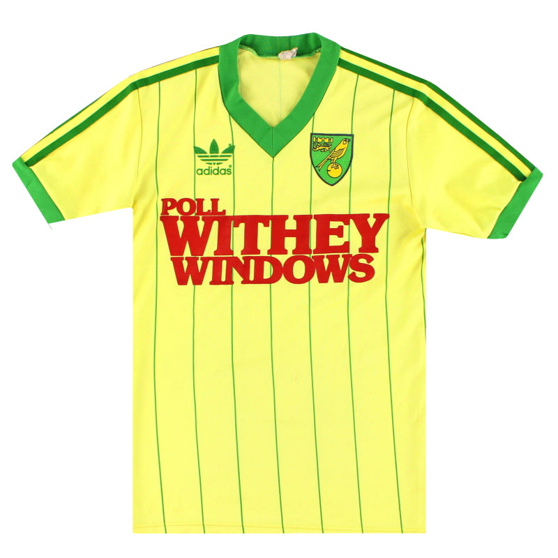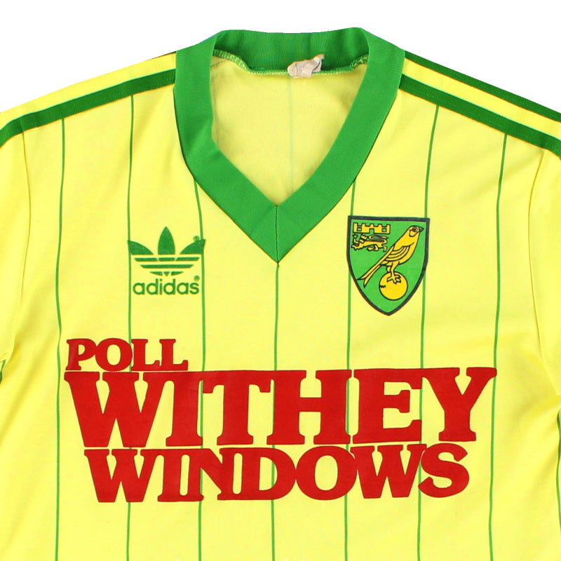 Home shirt as worn when Norwich City finished 14th in the First Division under Ken Brown, finishing 3 points clear of the relegation zone.