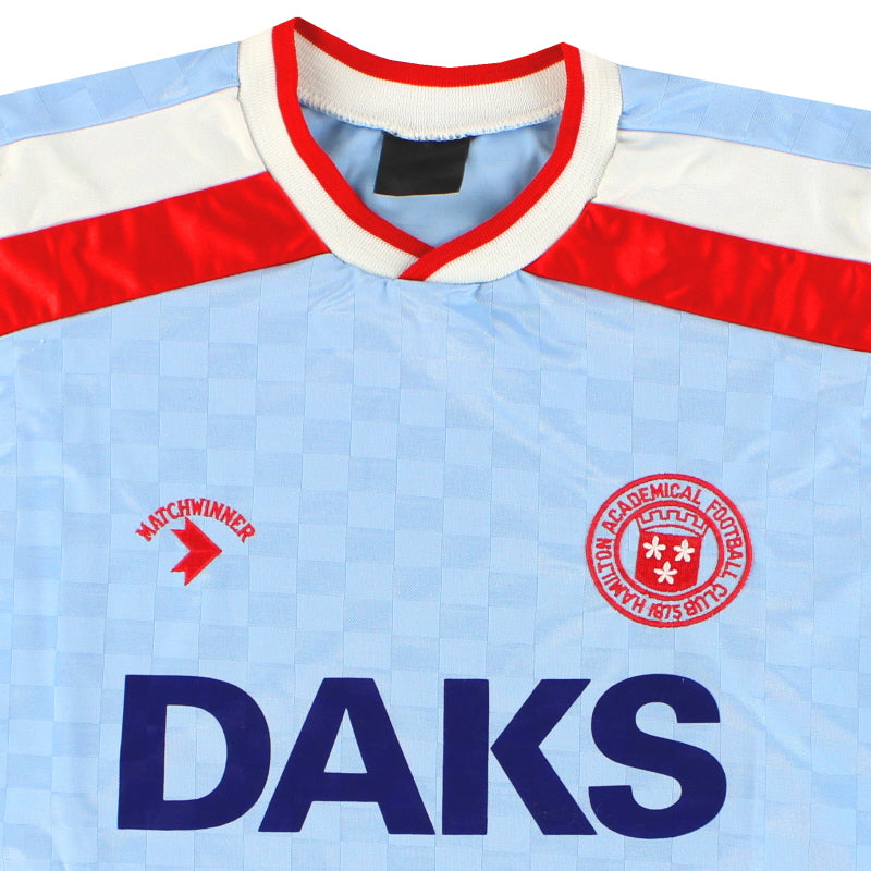 Details - Away shirt as worn when Hamilton Academical finished 10th and 6th in the Scottish First Division in respective seasons and were knocked out in the third round of the Scottish Cup in back to back seasons.