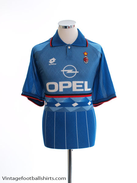 Details - Fourth shirt as worn when AC Milan gained their fifteenth Italian Championship led by famous world-class players such as Roberto Baggio, Marco Simone and George Weah under manager Fabio Capello. Also worn when AC Milan were knocked out in the quarter finals of the UEFA Cup, losing 3-2 on aggregate against Bordeaux.