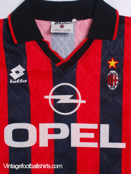 Details - Classic home shirt as worn when AC Milan gained their fifteenth Italian Championship led by famous world-class players such as Roberto Baggio, Marco Simone and George Weah under manager Fabio Capello. Also worn when AC Milan were knocked out in the quarter finals of the UEFA Cup, losing 3-2 on aggregate against Bordeaux.