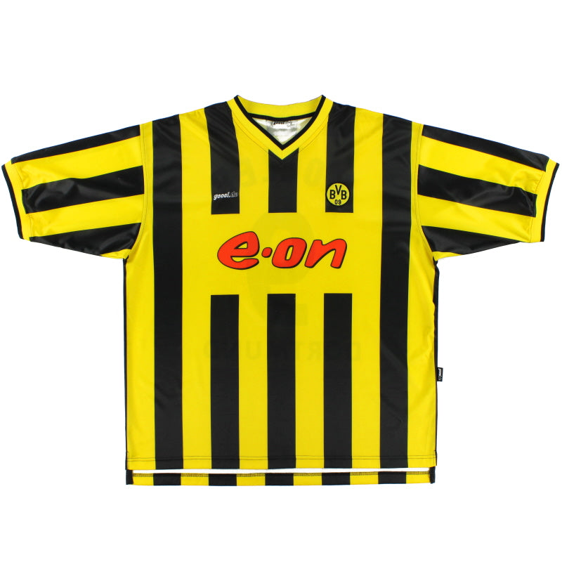 Details - Home shirt as worn when Borussia Dortmund finished 3rd in the Bundesliga in the 2000-01 season before winning the title in the next season. Also worn when Dortmund were knocked out in the third round of the DFB-Pokal, losing 2-1 against Schalke, and made it to the final of the 2001-02 UEFA Cup,, losing 3-2 against Feyenoord.